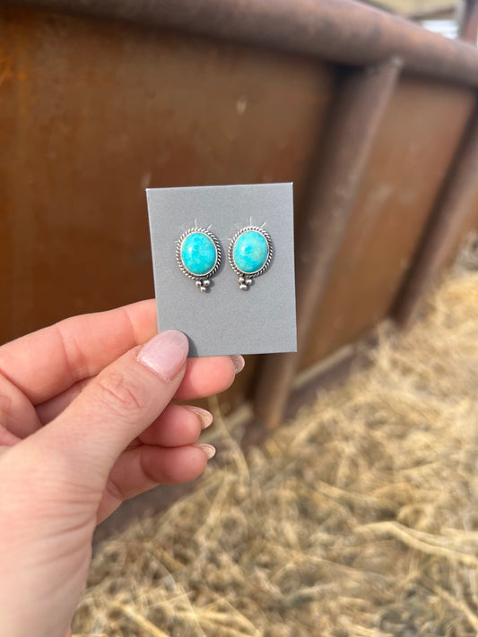 Janice Spencer Navajo Kingman 3 stone drop earrings