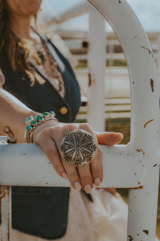 Beautiful half sphere statement ring, Navajo made and stamped adjustable